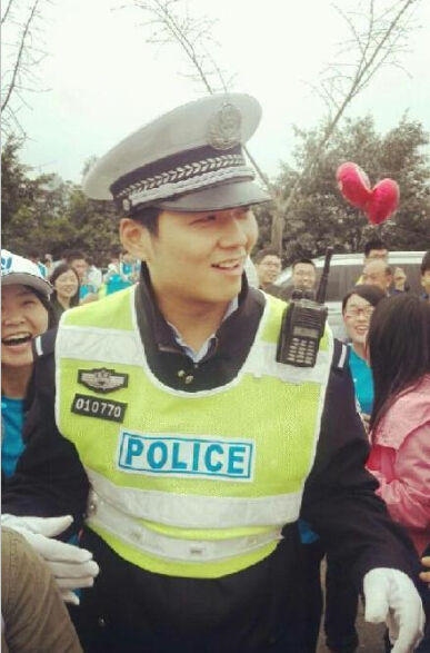 “这不稀奇,都不知道是第几次了。小女生送矿泉水的、送汉堡包的,还有在警摩上贴小纸条留下联系方式的,全是他的女粉丝。”刘宇的同事朱警官说,“小伙子长得帅,工作又认真,惹得小女孩倒追呢。”
