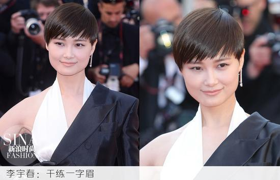 2015年5月22日,李宇春霸气亮相第68届戛纳电影节《小王子》首映礼,春春棱角分明的脸型虽然无缘甜美精致女人味,但多了几分青春率性,满满都是胶原蛋白的肌肤也让人羡慕不已。碎刘海湿发大气时尚,精心打理的一字眉形,尽显干练硬朗,但眉尾处微微上升,又使脸部看起来柔和了不少。