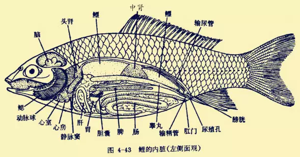 那既然前肾只在鱼小的时候发挥作用,鱼大后就退化了,难道长大的鱼就不尿尿了吗?当然还是得尿的。但用的器官就是中肾了。到这为止,鱼的尿已经基本形成了,剩下就是排出体外的事儿了。鱼撒尿还需要用到的三个部分是输尿管,膀胱和泄殖腔。尿到了这里,终于可以尿到外面的世界了,鱼的泄殖腔其实就是鱼的输出孔道,之所以叫做泄殖腔,就是因为鱼类排泄和排卵都通过这个孔道。
