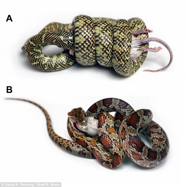 为了研究王蛇捕食更大体型猎物的能力,密苏里南方州立大学和路易斯安那大学拉法叶分校的研究者分析了6种蛇类的肌肉横截面。在研究了36条蛇的尸体之后,他们发现,所有的蛇都具有相似的肌肉质量。