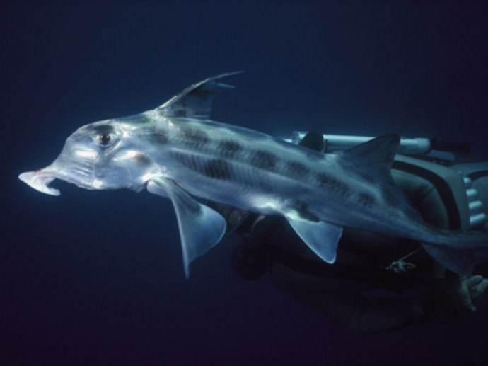 鬼鲨被认为是非常奇怪的海洋生物,它们长着凹陷呆滞的眼睛,翼状鱼鳍,以及鞭状长尾,除了外形独特之外,它们的性特征也同样不可思议。