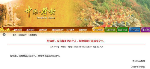 据河南省登封市人民政府网站消息,登封市宗教局4日夜间发布消息称,经核查,没有释正义这个人,其他事项正在核实之中。