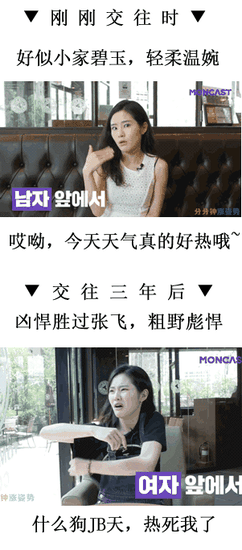 韩国网友亲身示范刚交往时和交往三年之后的区别,你也终于知道人生不易全靠演技。