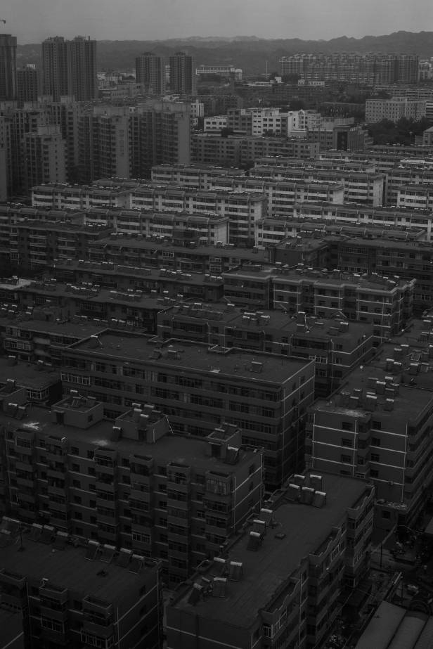 通过白银市中心的眺高点旋转餐厅,可以看到密集的楼群