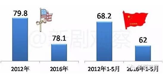 根据PwC数据显示,北美订阅电视的渗透率预计将由2012年的79.8%下降至2016年的78.1%。从CSM公布的全国收视总量来看,2012年1-5月观众平均到达率为68.2%,2016年1-5月下降至62%。