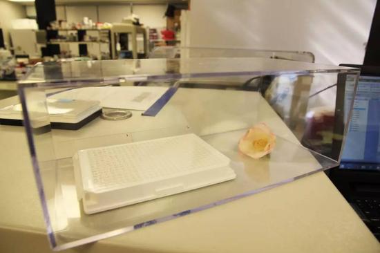384个小孔便对应384种气味分子。在把被测试的气体导入到测试板上,如果气味被某个嗅觉感受器感知的话,对应的小孔里的蛋白质就会被激发出荧光。