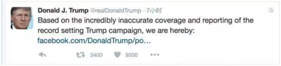 不过,这并非特朗普第一次开撕专业新闻媒体,他是社交媒体的宠儿,却是主流媒体的噩梦。这种噩梦不仅表现在特朗普时常挂在嘴边的对媒体的威胁:如果他入主白宫,将修改法律,让起诉媒体变得更容易,还表现在他限制了诸多媒体对候选人常规竞选活动的报道,也就是说,一些媒体未来可能根本没有机会进到现场,提笔写稿或者连线报道的事儿就更不用说了。