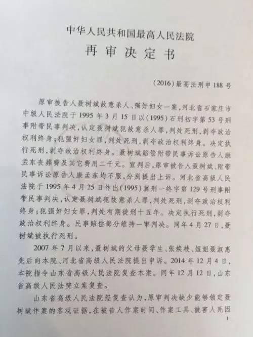最高法决定依法再审聂树斌案,已向聂树斌母亲送达再审决定书。