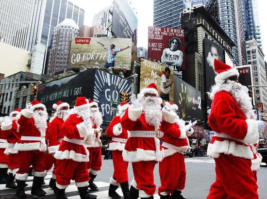 歪果仁的圣诞习俗:圣诞老人街道游行。