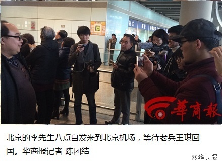 17张11日中午,王琪一行已抵达北京首都国际机场。