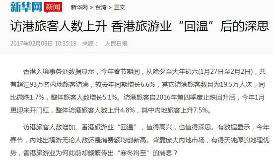 人民日报今年2月就曾发出评论称,香港旅游资源多,是全球闻名的旅游胜地、“购物天堂”,但近年来的危机也是显而易见的。就吸引内地市场来说,一方面,近年来,日本、韩国、泰国等国家和地区的旅游“竞赛”愈演愈烈;另一方面,内地旅客的消费模式与心理预期也随着时代发展而变化,可选择的目的地多了,不少内地游客的出游计划中,香港也有了“替代品”。