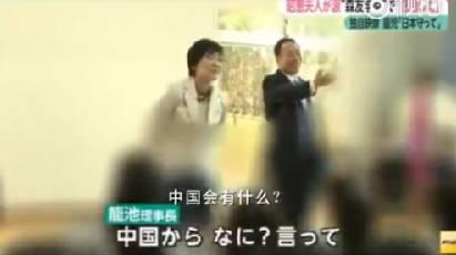 视频中,陪在安倍昭惠身边的正是森友学园理事长笼池泰典,他对孩子们说:“来自中国的什么?说吧。”一名男童回答道:“虽然会有子弹从中国飞来,但是我们绝对要保卫日本。”