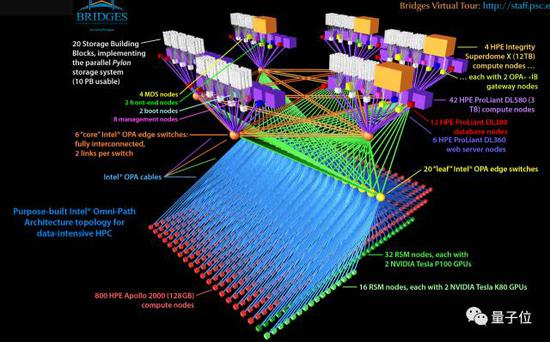 匹兹堡超算中心(PSC)高级研究总监Nick Nystrom,用一张图从全局的角度向量子位展示了Bridges到底是怎么构成的。