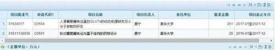 而在国家自然科学基金委员会的科学基金网络信息系统网站上,澎湃新闻根据查询结果不完全统计,颜宁在2007年回国任教以来,以她为负责人的批准项目至少有6个,批准资金总额为821万元。其中,与葡萄糖转运蛋白相关的研究项目也在列。