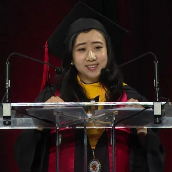 北京时间5月21日,马里兰大学中国留学生Yang Shuping受邀上台在毕业典礼上演讲说:“美国空气那么清新甜美,显得格外奢侈。”演讲稿内容随即引发轩然大波。
