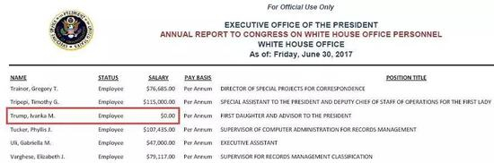 没错,这3名工资为零的雇员当中,有两人分别是特朗普的女儿伊万卡和女婿库什纳。