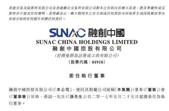 据悉,孙喆一所担任的融创中国执行董事初步任期为期3年,于2020年5月届满。