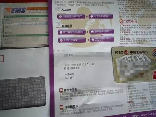 可等拿到信用卡的时候发现信用卡额度只有0.01元。于是询问了相关银行人员,原因是他还是学生,在个人征信系统里没有信用记录,只能给出0.01元的额度。