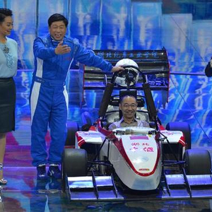 2017年7月13日,在廊坊录制《魅力中国城》时,十堰市委书记张维国开着十堰制造的赛车登场演讲,并邀请评委宁静、刘仪伟上台体验。(CFP/图)