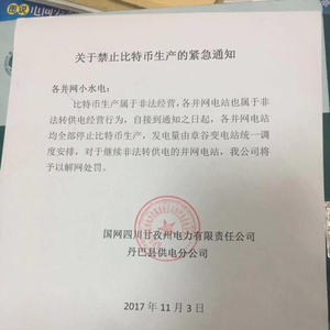 针对这一消息,已经有媒体致电丹巴县供电分公司负责人,对方表示:“该通知是真实的,但是表述有误,是公司部门在处理大面积限电问题时匆忙撰写,而非公司正式红头文件。其本意并非指比特币挖矿为非法经营,而是因有的小水电站未能优先满足当地的民生用电需求,违反了与公司购售电合同的要求。”
