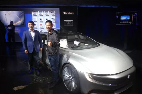 图:贾跃亭在展览区为LeSEE Pro 概念车揭幕