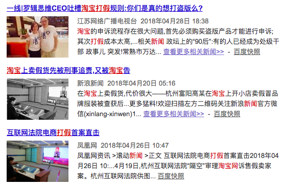 淘宝打假的步伐一直没有停过,并且越来越严厉。阿里巴巴和马云每过一段时间就会因为这样的事情发声。就在4月底,杭州互联网法院首次审理淘宝打假案,售假者当庭被判赔5万。对于这类事件,阿里巴巴集团高级法务专家张译文称,2018年阿里巴巴将继续加大起诉售假卖家的力度,对售假卖家的起诉将是持续的,不间歇的。