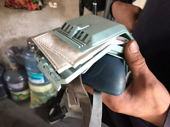 矿工使用的防尘面罩,里面夹两层滤棉。